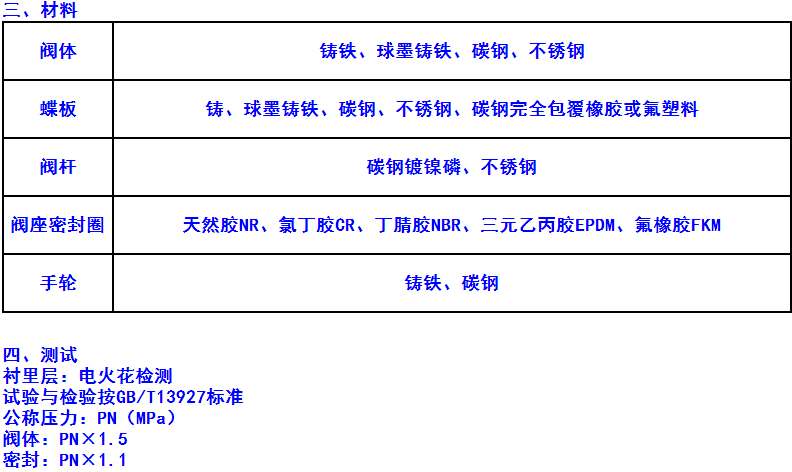 二、用途: 本閥專用于控制一般腐蝕性介質(zhì),閥體內(nèi)腔表面覆有可供選擇的各種橡膠,適用于不同工作溫度和流體管中,具有強(qiáng)度高、耐腐蝕性好的特點(diǎn)。 適用溫度:≤85℃、≤100℃、≤120℃(按照襯里材料) 壓力等級(jí):PN(MPa) 1.0 1.6