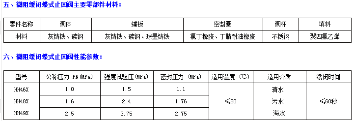四、微阻緩閉蝶式止回閥技術(shù)參數(shù):